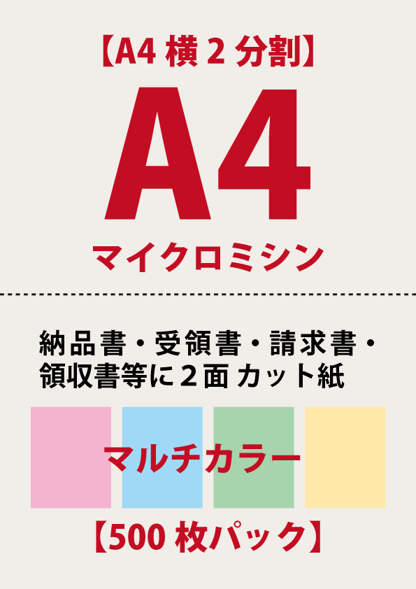A4サイズの2分割マイクロミシン目入り用紙です。